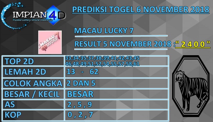 PREDIKSI TOGEL MACAU LUCKY 7 SELASA 6 NOVEMBER 2018 IMPIAN 4D